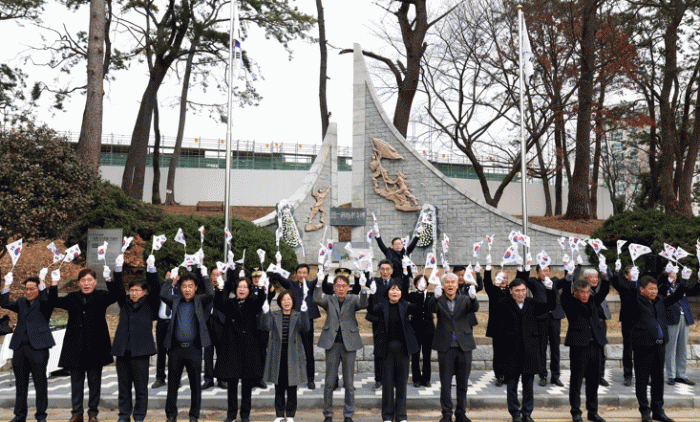 [¹Ìµð¾îÀü³² °í±Ô¼® ±âÀÚ]1ÀÏ ÀÒ¾î¹ö¸° Á¶±¹À» µÇã±â À§ÇØ ¿ÜÃÆ´ø 3.1 µ¶¸³¸¸¼¼¿îµ¿ÀÌ 107ÁÖ³âÀ» ¸ÂÀÌÇÑ °¡¿îµ¥ 1976³â °Ç¸³µÈ °Áø±º °ÁøÀ¾ ¼¼º¸® 3.1¿îµ¿ ±â³äºñ ¾Õ¿¡¼ ±èÁØÃ¶ °Áø ºÎ±º¼ö¸¦ ºñ·ÔÇØ °¢±Þ ±â°ü´ÜüÀå µî Âü¼®ÀÚµéÀÌ¡¦