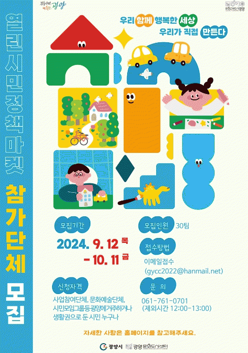 [¹Ìµð¾îÀü³² ÀÓ¼º¿Ï ±âÀÚ]±¤¾ç½Ã´Â ¿À´Â 12ÀϺÎÅÍ ±¤¾ç¹®Èµµ½Ã¼¾ÅÍ¿¡¼ µµ½Ã¹®È¸¦ À§ÇÑ Á¤Ã¥À» Á¦¾ÈÇÏ´Â °ø·ÐÀåÀÎ ¡®¿¸°½Ã¹ÎÁ¤Ã¥¸¶ÄÏ¡¯¿¡ Âü¿©ÇÒ ½Ã¹ÎÂü¿©ÆÀÀ» ¸ðÁýÇÑ´Ù°í ¹àÇû´Ù. 11¿ù¿¡ °³ÃÖÇÒ ¿¹Á¤ÀÎ ¡®¿¸°½Ã¹ÎÁ¤Ã¥¸¶ÄÏ¡¯Àº Áö³¡¦