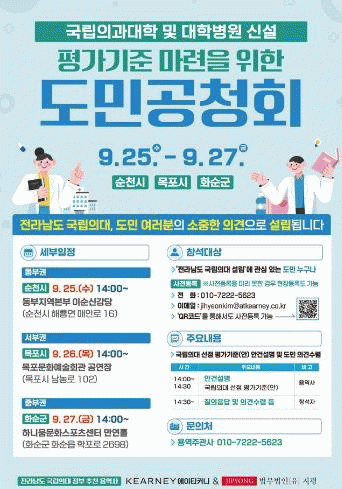 [¹Ìµð¾îÀü³² °í±Ô¼® ±âÀÚ]¸ñÆ÷½Ã´Â Àü¶ó³²µµ°¡ ÁøÇàÁßÀΡ®±¹¸³ÀÇ´ë ¹× ´ëÇк´¿ø ½Å¼³ Á¤ºÎ Ãßõ ¿ë¿ª¡¯°ú °ü·ÃÇØ Àü³² ±¹¸³ÀÇ´ë ¼±Á¤ Æò°¡±âÁØ ¸¶·ÃÀ» À§ÇÑ µµ¹Î °øÃ»È¸°¡ ¿¬±âµÆ´Ù°í ¹àÇû´Ù. ¿ë¿ª ÁÖ°ü»çÀÎ ¿¡ÀÌÆ¼Ä¿´ÏÄÚ¸®¾Æ¿Í ÁöÆòÀÌ ¡¦