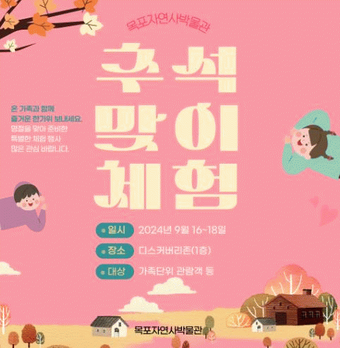 [¹Ìµð¾îÀü³² °í±Ô¼® ±âÀÚ]¸ñÆ÷ÀÚ¿¬»ç¹Ú¹°°ü¡¤»ýȰµµÀÚ¹Ú¹°°ü¡¤¾î¸°À̹ٴٰúÇаüÀÌ ¹ÎÁ· °íÀ¯ÀÇ ¸íÀýÀÎ Ãß¼®À» ¸Â¾Æ °íÇâÀ» ãÀº ±Í¼º°´°ú ¹Ú¹°°ü °ü¶÷°´À» ´ë»óÀ¸·Î Ưº°ÇÑ Ã¼ÇèÇà»ç¸¦ ÁغñÇß´Ù. ÀÚ¿¬»ç¹Ú¹°°üÀº Ãß¼® ¿¬ÈÞ ±â°£ÀÎ ¿À´Â¡¦