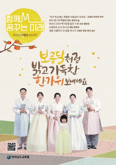 [¹Ìµð¾îÀü³² °í±Ô¼® ±âÀÚ]Àü¶ó³²µµ±³À°Ã» ¼Ò½ÄÁö 'ÇÔ²² ²Þ²Ù´Â ¹Ì·¡' 9¿ùÈ£°¡ ³ª¿Ô´Ù. À̹øÈ£´Â Ãß¼®À» ¸Â¾Æ ÇѺ¹À¸·Î °ö°Ô ´ÜÀåÇÑ Àü³²±³À°°¡Á·ÀÌ Ç¥Áö¸¦ Àå½Ä, µ¶Àڵ鿡°Ô Ãß¼® Àλ縦 ÀüÇÑ´Ù. ¡®ÇÔ²² ²Þ¡¯ Äڳʴ º¸¼º °¿µ¸ð¡¤ÇÑ¡¦
