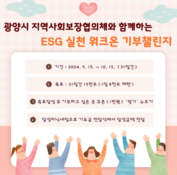 [¹Ìµð¾îÀü³² ÀÓ¼º¿Ï ±âÀÚ]±¤¾ç½Ã´Â °Ç°ÇÑ Áö¿ª»çȸ ºÐÀ§±â¸¦ Á¶¼ºÇϰíÀÚ 9¿ù 15ºÎÅÍ 10¿ù 15ÀϱîÁö ±¤¾ç½Ã Áö¿ª»çȸº¸ÀåÇùÀÇü¿Í °øµ¿À¸·Î ¡®¿öÅ©¿Â ±âºÎ縰Áö¡¯¸¦ ¿î¿µÇÑ´Ù°í ¹àÇû´Ù. °ÉÀ½À¸·Î ¾ò¾îÁö´Â °Ç°°ú ÇູÀ» »çȸÃë¾à°èÃþ¡¦