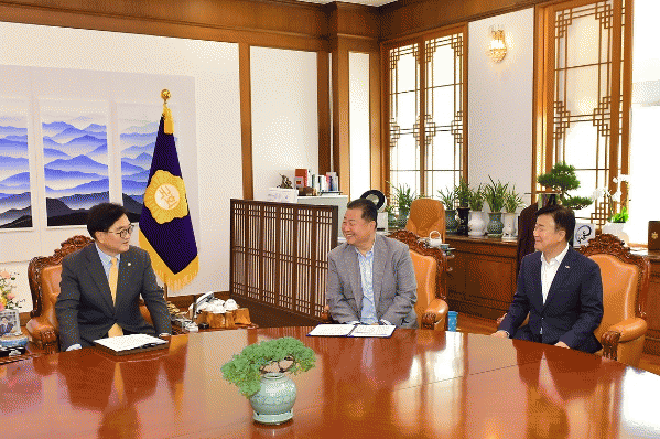 [¹Ìµð¾îÀü³² ÀüÇü¼º ±âÀÚ]Á¤±â¸í ¿©¼ö½ÃÀåÀÌ ¿ì¿ø½Ä ±¹È¸ÀÇÀåÀ» ¸¸³ª ȯ´ãÇϰí, ¡®Á¦33Â÷ À¯¿£±âÈĺ¯ÈÇù¾à ´ç»ç±¹ÃÑȸ(COP33) À¯Ä¡¡¯ µî ÇöÀç ÃßÁø ÁßÀÎ ±½Á÷ÇÑ Çö¾È¿¡ ´ëÇÑ Àû±ØÀûÀÎ ÇùÁ¶¸¦ °ÇÀÇÇß´Ù. 5ÀÏ ¿©¼ö½Ã¿¡ µû¸£¸é, Á¤ ½ÃÀåÀº¡¦