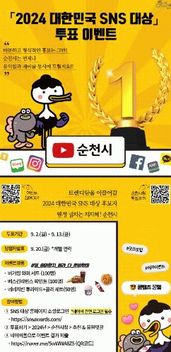[¹Ìµð¾îÀü³² ÀÓ¼º¿Ï ±âÀÚ]¼øÃµ½Ã´Â ¿À´Â 13ÀϱîÁö Àü ±¹¹ÎÀ» ´ë»óÀ¸·Î ¡®2024 ´ëÇѹα¹ SNS ´ë»ó ÅõÇ¥ À̺¥Æ®¡¯¸¦ ÁøÇàÇÑ´Ù°í ¹àÇû´Ù. SNS ´ë»ó ÅõÇ¥ À̺¥Æ®´Â Àü ±¹¹Î ´©±¸³ª Âü¿©ÇÒ ¼ö ÀÖ´Ù. ÅõÇ¥¹æ¹ýÀº ´ëÇѹα¹ SNS ´ë»ó ´©¸®Áý¿¡¡¦