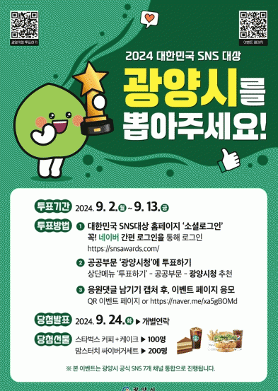 [¹Ìµð¾îÀü³² ÀÓ¼º¿Ï ±âÀÚ]±¤¾ç½Ã´Â 9¿ù 2ÀϺÎÅÍ 13ÀϱîÁö Àü ±¹¹ÎÀ» ´ë»óÀ¸·Î '2024 Á¦14ȸ ´ëÇѹα¹ SNS ´ë»ó ÅõÇ¥ À̺¥Æ®'¸¦ ÁøÇàÇÑ´Ù°í ¹àÇû´Ù. ¿Ã¹Ù¸¥ SNS Ȱ¿ë ¹®È¸¦ Á¤Âø½Ã۱â À§ÇØ 2011³â¿¡ Á¦Á¤µÈ ¡®´ëÇѹα¹ SNS ´ë»ó¡¯Àº SN¡¦