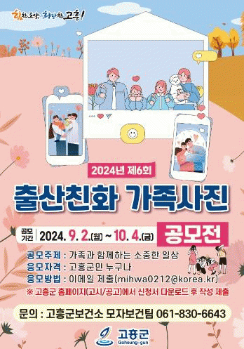 [¹Ìµð¾îÀü³² Á¦°¥´ëÁ¾ ±âÀÚ]°íÈﱺÀº ¾ÆÀ̰¡ ÁÖ´Â Çູ°ú °¡Á·ÀÇ ¼ÒÁßÇÔÀ» ÅëÇØ ÀúÃâ»ê ±Øº¹¿¡ ´ëÇÑ »çȸÀû °ø°¨´ë¸¦ È®»êÇϰí, °¡Á· Ä£È ºÐÀ§±â Á¶¼ºÀ» À§ÇØ ¡®Á¦6ȸ Ãâ»ê Ä£È °¡Á·»çÁø °ø¸ðÀü¡¯À» °³ÃÖÇÑ´Ù°í ¹àÇû´Ù. À̹ø °ø¸ðÀüÀº¡¦