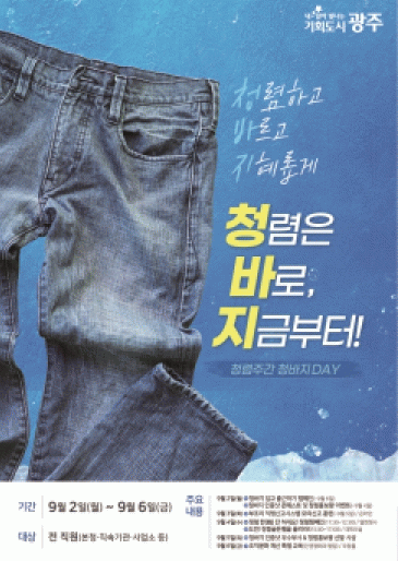 [¹Ìµð¾îÀü³² Á¦°¥´ëÁ¾ ±âÀÚ]±¤ÁÖ±¤¿ª½Ã´Â 9¿ù 2ÀϺÎÅÍ 6ÀϱîÁö 5ÀÏ °£À» ÀÚü û·ÅÁÖ°£À¸·Î Á¤ÇØ ¡®Ã»¹ÙÁöµ¥ÀÌ¡¯¸¦ ¿î¿µÇÑ´Ù. ¡®Ã»¹ÙÁö¡¯´Â ¡®Ã»·ÅÀº ¹Ù·Î Áö±Ý! û·ÅÇÏ°í ¹Ù¸£°í ÁöÇý·Ó°Ô!¡¯¸¦ ÁÙÀÎ ¸»ÀÌ´Ù. ±¤Áֽô ƯÁ¤°èÃþÀ̳ª Áö¡¦