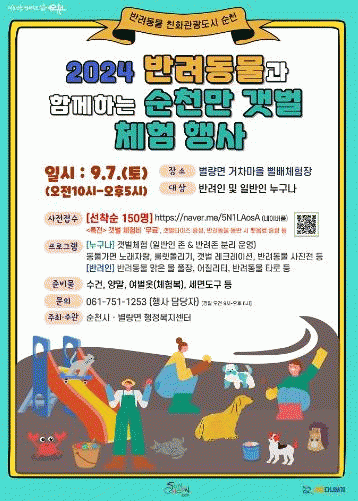 [¹Ìµð¾îÀü³² ÀÓ¼º¿Ï ±âÀÚ]¼øÃµ½Ã º°·®¸éÇàÁ¤º¹Áö¼¾ÅÍ´Â 2024³â ¹Ý·Áµ¿¹°Ä£È°ü±¤µµ½Ã Á¶¼º»ç¾÷°ú ¿¬°èÇÑ '2024 ¹Ý·Áµ¿¹°°ú ÇÔ²²ÇÏ´Â ¼øÃµ¸¸ °¹¹ú üÇèÇà»ç'¸¦ ¿À´Â 9¿ù 7ÀÏ Åä¿äÀÏ ¿ÀÀü 10½ÃºÎÅÍ ¼øÃµ¸¸ ûÁ¤ °¹¹úÀÇ ¾Æ¸§´Ù¿òÀ» ´À³¥ ¼ö ¡¦