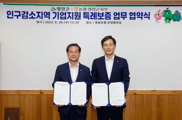 [¹Ìµð¾îÀü³² °í±Ô¼® ±âÀÚ]¿µ¾Ï±ºÀÌ 27ÀÏ ±ºÃ»¿¡¼ ³óÇùÀºÇà ¿µ¾Ï±ºÁöºÎ¿Í ¡®Àα¸°¨¼ÒÁö¿ª ±â¾÷Áö¿ø Ư·Êº¸Áõ ¾÷¹«Çù¾à¡¯À» ü°áÇß´Ù. ±â¾÷Áö¿ø Ư·Êº¸ÁõÀº ÇàÁ¤¾ÈÀüºÎ°¡ Áö¿ª °æÁ¦ Ȱ¼ºÈ ¹× Áö¹æ¼Ò¸ê À§±â ´ëÀÀÀ» À§ÇØ Àα¸°¨¼Ò¡¤°ü½ÉÁö¡¦