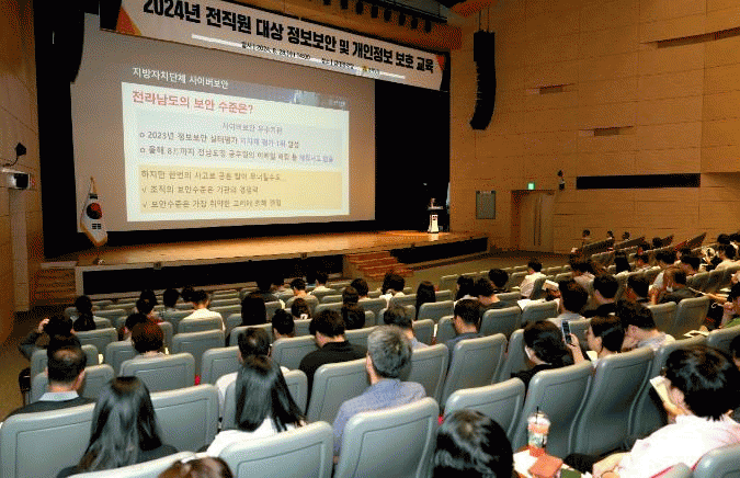 [¹Ìµð¾îÀü³² Á¦°¥´ëÁ¾ ±âÀÚ]Àü¶ó³²µµ´Â 28ÀÏ ±è´ëÁß°´ç¿¡¼ Àü Á÷¿øÀ» ´ë»óÀ¸·Î »ç·Ê Á᫐ Á¤º¸º¸¾È ¹× °³ÀÎÁ¤º¸ º¸È£ ±³À°À» ÇØ ½Ç¹«Àû º¸¾È ´ëÀÀ·ÂÀ» °ÈÅä·Ï Çß´Ù. ÃÖ±Ù »çÀ̹ö °ø°ÝÀÌ ±ÞÁõÇϸç, ÀÌ¿¡ µû¸¥ ´ë±Ô¸ð °³ÀÎÁ¤º¸ À¯ÃâÀÌ¡¦