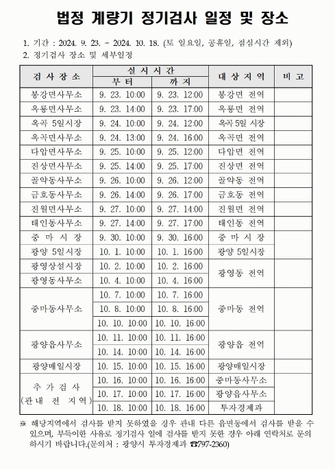 [¹Ìµð¾îÀü³² ÀÓ¼º¿Ï ±âÀÚ]±¤¾ç½Ã´Â °øÁ¤°Å·¡ Áú¼ È®¸³À» À§ÇÑ °è·®±â Á¤±â °Ë»ç¸¦ ¿À´Â 9¿ù 23ÀϺÎÅÍ 10¿ù 18ÀϱîÁö ½Ç½ÃÇÑ´Ù°í ¹àÇû´Ù. ¡®°è·®±â Á¤±â°Ë»ç¡¯´Â '°è·®¿¡ °üÇÑ ¹ý·ü'¿¡ µû¶ó °è·®±âÀÇ Á¤È®µµ¸¦ À¯ÁöÇÏ°í ºÒ¹ý °è·®±âÀÇ »ç¡¦