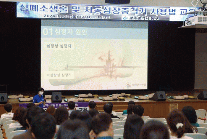 [¹Ìµð¾îÀü³² ±èÁ¤¿ì ±âÀÚ]±¤ÁÖ µ¿±¸´Â ÃÖ±Ù Àü Á÷¿øÀ» ´ë»óÀ¸·Î ¡®½ÉÆó¼Ò»ý¼ú ¹× ÀÚµ¿½ÉÀåÃæ°Ý±â »ç¿ë¹ý ±³À°¡¯À» ÁøÇàÇß´Ù°í ¹àÇû´Ù. À̹ø ±³À°Àº ÀÀ±Þ»óȲ ¹ß»ý ½Ã ½Å¼ÓÇÏ°Ô ´ëÀÀÇÒ ¼ö ÀÖµµ·Ï ¸¶·ÃµÆÀ¸¸ç (»ç)´ëÇѾÈÀü¿¬ÇÕ °»ç°¡ ¡ã¡¦