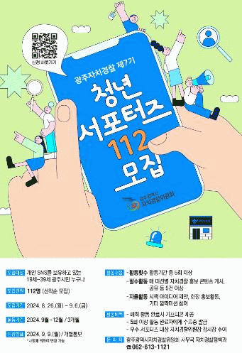 [¹Ìµð¾îÀü³² Á¦°¥´ëÁ¾ ±âÀÚ]±¤ÁÖ±¤¿ª½ÃÀÚÄ¡°æÂûÀ§¿øÈ¸´Â 26ÀϺÎÅÍ 9¿ù 6ÀϱîÁö ÀÚÄ¡°æÂû ºÐ¾ß ¿Â¶óÀÎ È«º¸¿Í Áö¿ª ¸ÂÃãÇü Ä¡¾È½ÃÃ¥ ¹ß±¼À» À§ÇÑ ¡®Á¦7±â û³â ¼Æ÷ÅÍÁî 112¡¯¸¦ ¸ðÁýÇÑ´Ù. ¡®Ã»³â ¼Æ÷ÅÍÁî 112¡¯´Â Áö³ 2021³â 7¿ù ±¤ÁÖ¡¦