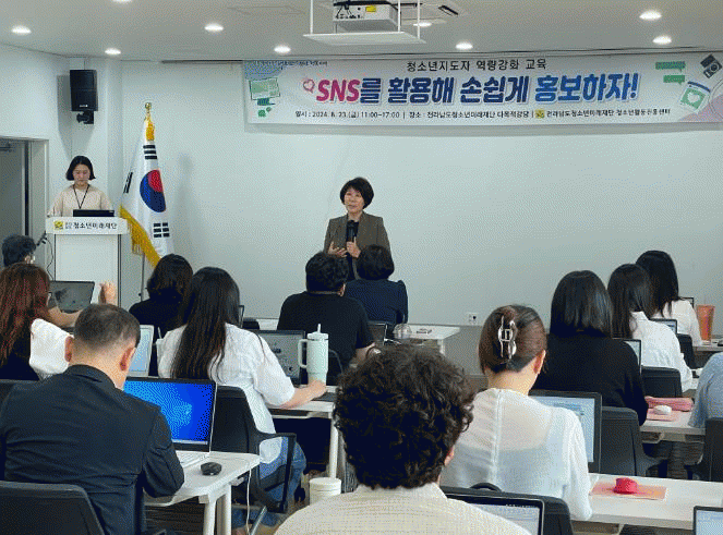 [¹Ìµð¾îÀü³² Á¦°¥´ëÁ¾ ±âÀÚ]Àü³²µµ°¡ ÁÖÃÖÇϰí Àü¶ó³²µµÃ»¼Ò³â¹Ì·¡Àç´ÜÀÌ ÁÖ°üÇÑ SNS¸¦ Ȱ¿ëÇÑ È«º¸Àü·« ±³À°ÀÌ 8¿ù 23ÀÏ Àü¶ó³²µµÃ»¼Ò³â¹Ì·¡Àç´Ü 1Ãþ ´Ù¸ñÀû °´ç¿¡¼ ¿·È´Ù. À̹ø ±³À°Àº µðÁöÅÐ ¹Ìµð¾î ½Ã´ëÀÇ ±Þº¯Çϴ ȯ°æ ¼Ó¿¡¼¡¦