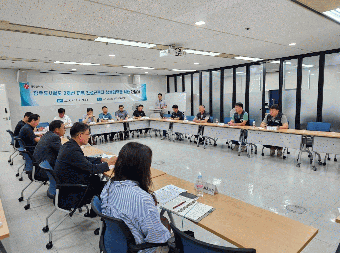 [¹Ìµð¾îÀü³² Á¦°¥´ëÁ¾ ±âÀÚ]±¤ÁÖ±¤¿ª½Ãµµ½Ãöµµ°Ç¼³º»ºÎ´Â 22ÀÏ µµ½Ãöµµ°Ç¼³º»ºÎ ´ëȸÀÇÀå¿¡¼ ¡®µµ½Ãöµµ 2È£¼± 2´Ü°è¡¯ °Ç¼³°ø»ç Âø°ø¿¡ ¾Õ¼ Áö¿ª °Ç¼³³ëÁ¶¿Í °£´ãȸ¸¦ °³ÃÖÇß´Ù. À̳¯ °£´ãȸ´Â ÃÖ±Ù ±Ý¸®Àλó°ú ÀΰǺñ¡¤°Ç¼³ÀÚÀç ¡¦