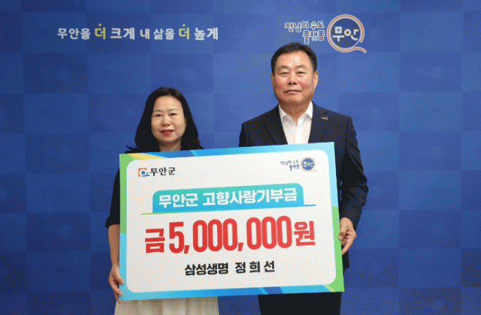 [¹Ìµð¾îÀü³² ±èÆÇ±¹ ±âÀÚ]Àü³² ¹«¾È±ºÀº »ï¼º»ý¸í Á¤Èñ¼± ¼³°è»ç°¡ À۳⿡ ÀÌ¾î ¿ÃÇØµµ ¹«¾È±º¿¡ °íÇâ»ç¶û±âºÎ±Ý 500¸¸¿øÀ» ±âŹÇϰí Áö¿ª ¹ßÀü¿¡ µû¶æÇÑ ÀÀ¿øÀ» º¸³Â´Ù°í 21ÀÏ ¹àÇû´Ù. ¹«¾È±º Ãâ½ÅÀÇ Á¤Èñ¼± ¼³°è»ç´Â Áö³ 2018³â ÇÑ ÇØ¡¦