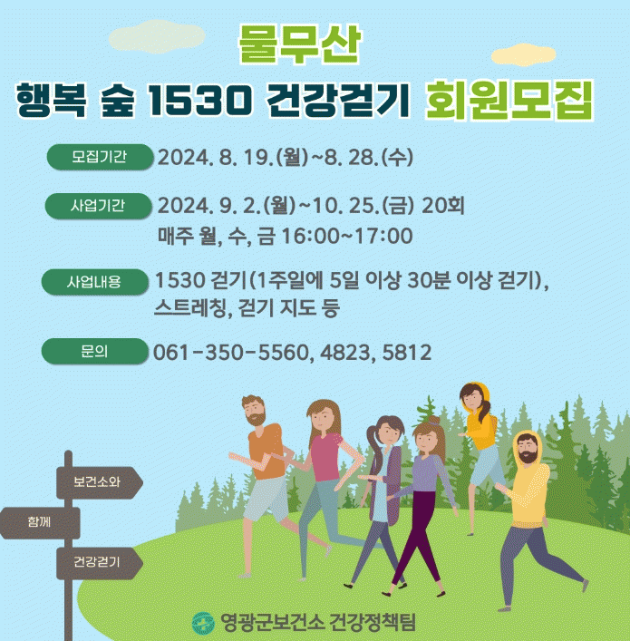[¹Ìµð¾îÀü³² Á¦°¥´ëÁ¾ ±âÀÚ]¿µ±¤±ºÀº ÀÏ»ó»ýȰ ¼Ó °È±â ½À°üÀ» Çü¼ºÇØ Áö¿ªÁÖ¹ÎÀÇ ¸¸¼ºÁúȯÀ» ¿¹¹æÇÏ°í °Ç°ÇÑ »îÀ» ÁõÁøÇϱâ À§ÇØ'Á¦2±â 1530 °Ç°°È±â'´ë»óÀÚ¸¦ 8¿ù 19ÀϺÎÅÍ 28ÀϱîÁö ¼±Âø¼ø 20¸í ¸ðÁýÇϸç, ¿¬·É Á¦ÇÑ ¾øÀÌ ´©±¸³ª Âü¡¦