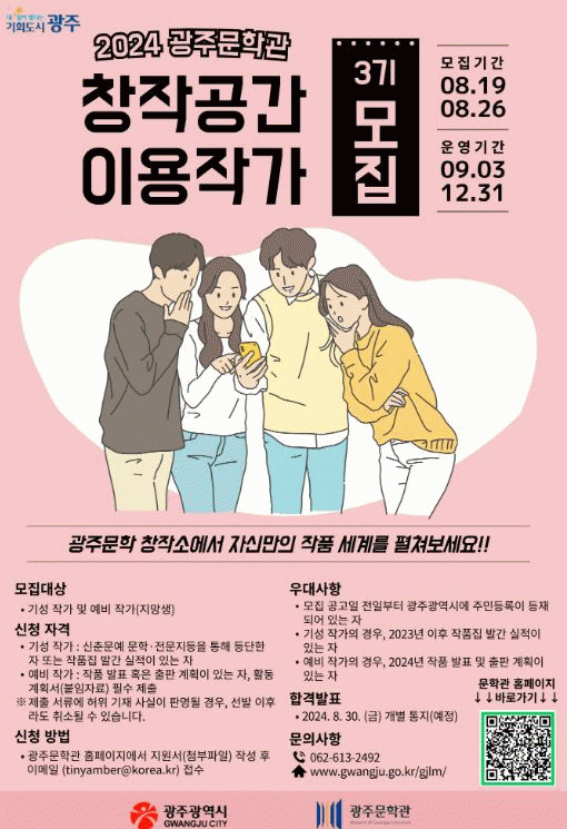 [¹Ìµð¾îÀü³² Á¦°¥´ëÁ¾ ±âÀÚ]±¤ÁÖ¹®ÇаüÀÌ Âü½ÅÇÏ°í ¿ª·® ÀÖ´Â ¡®Á¦3±â âÀÛ°ø°£ ÀÌ¿ë ¹®ÇÐÀÛ°¡¡¯¸¦ ¿À´Â 30ÀϱîÁö ¸ðÁýÇÑ´Ù. ±¤ÁÖ¹®Çаü âÀÛ°ø°£Àº ¹®ÇÐ ÁýÇÊ¿¡ ÁýÁßÇϱâ À§ÇÑ ÀÛ¾÷½Ç·Î, ¹®Çаü 2¡¤3Ãþ¿¡ À§Ä¡Çϰí ÀÖ´Ù. ÀÌ¿ë ½Ã°£Àº¡¦