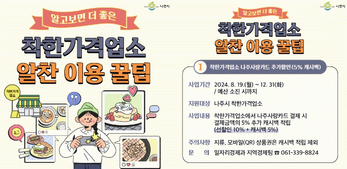 [¹Ìµð¾îÀü³² Á¦°¥´ëÁ¾ ±âÀÚ]Àü¶ó³²µµ ³ªÁÖ½Ã ÂøÇѰ¡°Ý¾÷¼Ò¿¡¼ ³ªÁÖ»ç¶ûÄ«µå¸¦ »ç¿ëÇϸé ÃÑ °áÁ¦¾×ÀÇ 5%¸¦ Ãß°¡·Î Áï½Ã Àû¸³ÇØÁØ´Ù. ³ªÁֽô 19ÀϺÎÅÍ ¿Ã ¿¬¸» ¿¹»ê ¼ÒÁø ½Ã±îÁö ¡®ÂøÇѰ¡°Ý¾÷¼Ò ³ªÁÖ»ç¶ûÄ«µå Ãß°¡ÇÒÀÎ(5% ij½Ã¹é) Áö¿ø¡¦