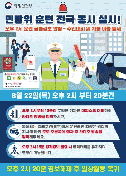 [¹Ìµð¾îÀü³² Á¦°¥´ëÁ¾ ±âÀÚ]±¤ÁÖ±¤¿ª½Ã´Â Àû °ø½À½Ã ½Ã¹ÎÀÇ ´ëÀÀ ¿ª·®À» °ÈÇϱâ À§ÇØ ¿À´Â 22ÀÏ ¿ÀÈÄ 2½ÃºÎÅÍ 20ºÐ°£ Àü±¹ µ¿½Ã ¡®À»Áö¿¬½À(19~22ÀÏ) ¿¬°è °ø½À´ëºñ ¹Î¹æÀ§ ÈÆ·Ã¡¯À» ½Ç½ÃÇÑ´Ù. ¹Î¹æÀ§ ÈÆ·ÃÀº °ø½À°æº¸ ¹ß·É, °æ°è°æº¸¡¦