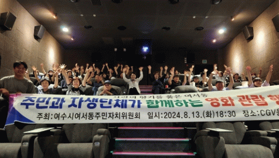 [¹Ìµð¾îÀü³² ÀüÇü¼º ±âÀÚ]¿©¼µ¿ ÁÖ¹ÎÀÚÄ¡À§¿øÈ¸´Â Áö³ 13ÀÏ, CGV¿©¼ö¿õõ¿¡¼ Áֹΰú ÀÚ»ý´Üü ȸ¿øµéÀÌ ÇÑÀÚ¸®¿¡ ¸ð¿© ¿µÈ °ü¶÷ Çà»ç¸¦ °¡Á³´Ù°í ¹àÇû´Ù. À̹ø ¿µÈ °ü¶÷¿¡´Â ¿©¼µ¿ ÁֹΠ¹× 6°³ ÀÚ»ý´Üü ȸ¿ø 100¿© ¸íÀÌ Âü¼®ÇÑ °¡¡¦