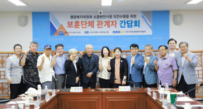[¹Ìµð¾îÀü³² Á¦°¥´ëÁ¾ ±âÀÚ] ³ªÁÖ½ÃÀÇȸ ÇàÁ¤º¹ÁöÀ§¿øÈ¸´Â Áö³ 8¿ù 9ÀÏ ½ÃÀÇȸ ¼ÒȸÀǽǿ¡¼ º¸ÈÆ´ÜüÀåµéÀ» ÃÊûÇÏ¿© °£´ãȸ¸¦ °¡Á³´Ù. °£´ãȸ´Â Á¶¿µ¹Ì ÇàÁ¤º¹ÁöÀ§¿øÀåÀ» ºñ·ÔÇØ ÀÌÀç³²ÀÇÀå, À̻󸸡¤ÃÖÁ¤±â¡¤ ¹Ú¼ºÀº ÀÇ¿ø, ³ªÁֽà ¡¦