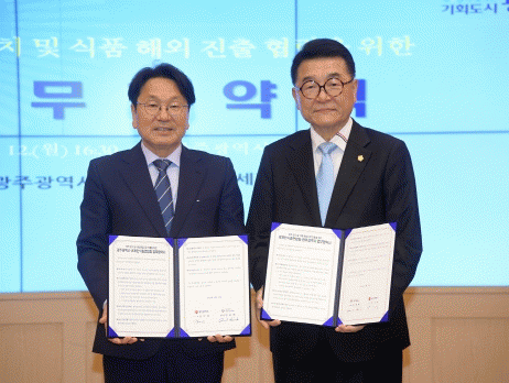 [¹Ìµð¾îÀü³² Á¦°¥´ëÁ¾ ±âÀÚ]±¤Áֽð¡ ¼¼°èÇѽÄÃÑ¿¬ÇÕȸ¿Í ¼ÕÀ» ¸ÂÀâ°í ±¤ÁÖ±èÄ¡¿Í ½ÄǰÀÇ ÇØ¿Ü½ÃÀå ÁøÃâÀ» °¡¼ÓÈÇÑ´Ù. ±¤ÁÖ±¤¿ª½Ã´Â 12ÀÏ ½Ãû ºñÁî´Ï½º·ë¿¡¼ ±¤ÁÖ ±èÄ¡ ¹× ½ÄǰÀÇ ÇØ¿ÜÁøÃâ Çù·ÂÀ» À§ÇØ ¼¼°èÇѽÄÃÑ¿¬ÇÕȸ¿Í ¾÷¹«Çù¾à¡¦