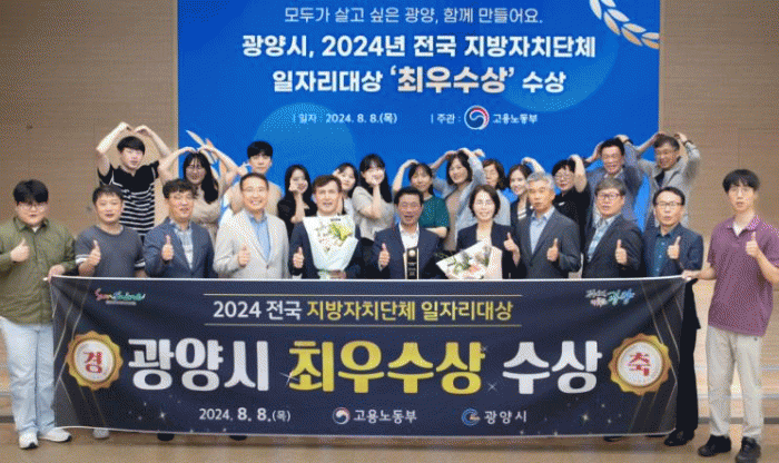 [¹Ìµð¾îÀü³² ÀÓ¼º¿Ï ±âÀÚ]±¤¾ç½Ã´Â 8ÀÏ ¼¿ï ¿¤Å¸¿ö¿¡¼ ¿¸° ¡®2024³â Àü±¹ Áö¹æÀÚÄ¡´Üü ÀÏÀÚ¸®´ë»ó¡¯ ½Ã»ó½Ä¿¡¼ ±¤¾ç½Ã°¡ ÀÏÀÚ¸® °ø½ÃÁ¦ ºÎ¹® ¡®ÃÖ¿ì¼ö»ó¡¯À» ¼ö»óÇß´Ù°í ¹àÇû´Ù. ¡®Àü±¹ Áö¹æÀÚÄ¡´Üü ÀÏÀÚ¸®´ë»ó¡¯Àº °í¿ë³ëµ¿ºÎ°¡ ¡¦