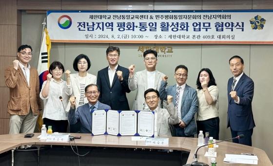 [¹Ìµð¾îÀü³² °í±Ô¼® ±âÀÚ] ¹ÎÁÖÆòÈÅëÀÏÀÚ¹®È¸ÀÇ(ÀÌÇÏ ¡®¹ÎÁÖÆòÅ롯) Àü³²Áö¿ªÈ¸ÀÇ(¿ì½ÂÇÏ ºÎÀÇÀå)¿Í ¼¼ÇÑ´ëÇб³ Àü³²ÅëÀϱ³À°¼¾ÅÍ(À̽ÂÈÆ ¼¼ÇÑ´ë ÃÑÀå)´Â 2ÀÏ ¼¼ÇÑ´ëÇб³ º»°ü ´ëȸÀǽǿ¡¼ Àü³²Áö¿ª ÆòÈ¡¤ÅëÀÏ È°¼ºÈ ¾÷¹« Çù¾àÀ» ¡¦