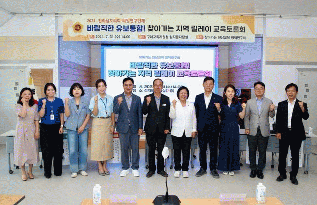 [¹Ìµð¾îÀü³² Á¦°¥´ëÁ¾ ±âÀÚ]Àü¶ó³²µµÀÇȸ ¡®Ã£¾Æ°¡´Â Àü³²±³À° Á¤Ã¥¿¬±¸È¸¡¯´Â Áö³ 7¿ù 31ÀÏ ±¸·Ê±³À°Áö¿øÃ» ´ëȸÀǽǿ¡¼ Åä·Ðȸ¸¦ °³ÃÖÇß´Ù. À̹ø Åä·Ðȸ´Â À¯¾Æ±³À°°ú º¸À°ÀÇ ÅëÇÕÀ» ÅëÇØ ¿ì¸® »çȸÀÇ ¹Ì·¡¸¦ À̲ø¾î°¥ ¾î¸°À̵éÀÇ ¡¦