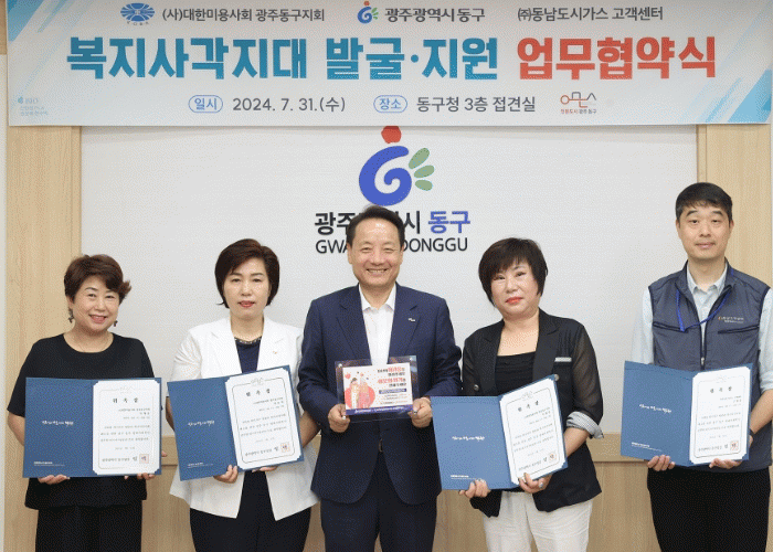 [¹Ìµð¾îÀü³² ±èÁ¤¿ì ±âÀÚ]±¤ÁÖ µ¿±¸´Â 31ÀÏ º¹ÁöÀ§±â°¡±¸ Á¶±â ¹ß±¼°ú Áö¿ª»çȸ ¾ÈÀü¸Á °È¸¦ À§ÇØ (»ç)´ëÇѹ̿ë»çȸ ±¤ÁÖµ¿±¸Áöȸ ¹× ¢ßµ¿³²µµ½Ã°¡½º °í°´¼¾ÅÍ¿Í ¡®º¹Áö»ç°¢Áö´ë ¹ß±¼¡¤Áö¿ø¡¯À» À§ÇÑ ¾÷¹« Çù¾àÀ» ü°áÇß´Ù°í ¹àÇû´Ù. ¡¦