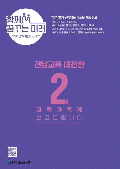 [¹Ìµð¾îÀü³² °í±Ô¼® ±âÀÚ]Àü¶ó³²µµ±³À°Ã» ¼Ò½ÄÁö 'ÇÔ²² ²Þ²Ù´Â ¹Ì·¡' 7+8¿ùÈ£°¡ ³ª¿Ô´Ù. À̹ø È£¿¡¼´Â ¡®Àü³²±³À° ´ëÀüȯ 2³â¡¯À» ƯÁýÀ¸·Î ´Ù·ð´Ù. ÁÖ¹ÎÁ÷¼±4±â 2ÁÖ³âÀ» ¸Â¾Æ ¡âÀü³²±³À°°¡Á·²² º¸°íµå¸³´Ï´Ù ¡âÀü³²±³À° ´ëÆ÷·³ Áö¸é¡¦