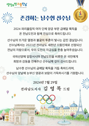 [¹Ìµð¾îÀü³² Á¦°¥´ëÁ¾ ±âÀÚ]±è¿µ·Ï Àü¶ó³²µµÁö»ç´Â 2024 ÆÄ¸®¿Ã¸²ÇÈ¿¡¼ ¿©ÀÚ ´ÜüÀü 10¿¬ÆÐÀÇ ½Åȸ¦ ´Þ¼ºÇÑ Àü³² Ãâ½Å ³²¼öÇö ¼±¼ö¿¡°Ô 29ÀÏ ÃàÀüÀ» º¸³Â´Ù. ³²¼öÇö ¼±¼ö´Â 28ÀÏ(ÇöÁö½Ã°£) ÆÄ¸® ·¹Àï¹ß¸®µå¿¡¼ ¿¸° ¾ç±Ã ¿©ÀÚ ´Üü¡¦