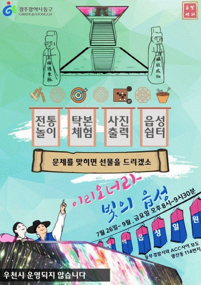 [¹Ìµð¾îÀü³² ±èÁ¤¿ì ±âÀÚ]±¤ÁÖ µ¿±¸´Â Áö³´Þ °³°üÇÑ ¡®ºûÀÇ À¾¼º¡¯¿¡¼ 26ÀϺÎÅÍ ¿À´Â 9¿ù±îÁö ¸ÅÁÖ ±Ý¿äÀÏ(¿ÀÈÄ 8½Ã~9½Ã 30ºÐ¡¤¿ìõ ½Ã ¹Ì¿î¿µ)¸¶´Ù ¡®À̸® ¿À³Ê¶ó, ºûÀÇ À¾¼º¡¯ Çà»ç¸¦ ¿¬´Ù°í ¹àÇû´Ù. ¡®ºûÀÇ À¾¼º¡¯Àº ±¤ÁÖ µ¿±¸ÀÇ ¾ß¡¦