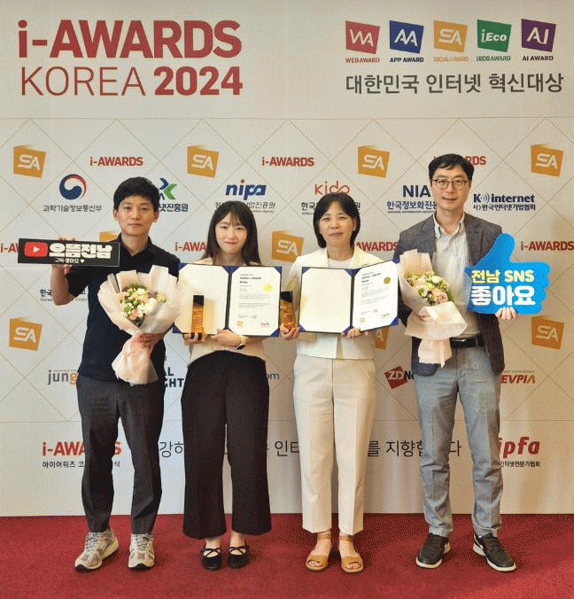 [¹Ìµð¾îÀü³² Á¦°¥´ëÁ¾ ±âÀÚ]Àü¶ó³²µµ´Â °ø½Ä À¯Æ©ºê¿Í ºí·Î±×°¡ °¡Àå Çõ½ÅÀûÀÎ SNS¹Ìµð¾î Ç÷§ÆûÀ» ½Ã»óÇØ ±¹³» ÃÖ°í ±ÇÀ§¸¦ ÀÚ¶ûÇÏ´Â ¡®¼Ò¼È¾ÆÀ̾î¿öµå(Social i-Awards) 2024¡¯¿¡¼ ±¤¿ªÀÚÄ¡´Üü ºÐ¾ß ´ë»óÀ» ¼ö»óÇß´Ù°í ¹àÇû´Ù. ¡®¼Ò¡¦