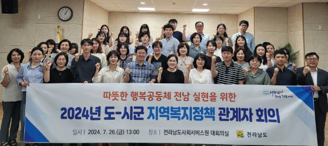 [¹Ìµð¾îÀü³² Á¦°¥´ëÁ¾ ±âÀÚ]Àü¶ó³²µµ´Â 26ÀÏ Àü³²»çȸ¼ºñ½º¿ø ´ëȸÀǽǿ¡¼ ¡®µµ-½Ã±º Áö¿ªº¹Áö Á¤Ã¥°ü°èÀÚ È¸ÀÇ¡¯¸¦ ¿¾î ±ä±Þµ¹º½°ú Àç°¡ÀÇ·á±Þ¿©, °íµ¶»ç ¿¹¹æ µî 2024³â ÇϹݱ⠺¹ÁöÁ¤Ã¥ ÃßÁø ¹æÇâÀ» °øÀ¯Çϰí Çù·Â ¹æ¾ÈÀ» ¸ð»öÇß´Ù¡¦