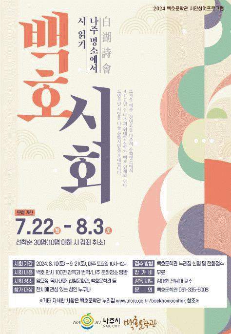 [¹Ìµð¾îÀü³² Á¦°¥´ëÁ¾ ±âÀÚ]Á¶¼± õÀç ½ÃÀÎÀÌÀÚ ´ç´ë ¸í¹®Àå°¡·Î ²ÅÈ÷´Â ³ªÁÖ Ãâ½Å ¡®¹éÈ£ ÀÓÁ¦¡¯ÀÇ Çѽà ÀÛǰ ÇØ¼®À» Á¢ÇÒ ¼ö ÀÖ´Â ¹®ÇÐ °¿¬ÀÌ ÆîÃÄÁø´Ù. Àü¶ó³²µµ ³ªÁֽô ¹éÈ£¹®Çаü ¡®¹éÈ£½Ãȸ¡¯(ÛÜûÉãÌüå) Âü¿© ¼ö°»ý 30¸íÀ» 8¡¦