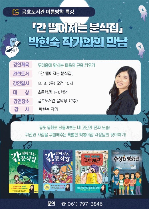 [¹Ìµð¾îÀü³² ÀÓ¼º¿Ï ±âÀÚ]±¤¾ç±ÝÈ£µµ¼°üÀÌ ¿À´Â 8¿ù 8ÀÏ ¸ñ¿äÀÏ ¿ÀÀü 10½Ã¿¡ °ü³» ¾î¸°À̵éÀ» ´ë»óÀ¸·Î ¹ÚÇö¼÷ ÀÛ°¡¿ÍÀÇ ¸¸³²À» ¿î¿µÇÑ´Ù. ¿ÃÇØ ¿©¸§¹æÇÐÀ» ¸Â¾Æ ±ÝÈ£µµ¼°üÀÌ ¿î¿µÇÏ´Â ¿¹¼ú, ¹®È ÇÁ·Î±×·¥Àº ¹«´õÀ§¸¦ ³¯¸®´Â °øÆ÷ ÀÌ¡¦