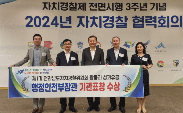 [¹Ìµð¾îÀü³² Á¦°¥´ëÁ¾ ±âÀÚ]Àü¶ó³²µµÀÚÄ¡°æÂûÀ§¿øÈ¸°¡ Á¦1±â ÀÚÄ¡°æÂûÀ§¿øÈ¸ Ȱµ¿ ¿ì¼ö±â°üÀ¸·Î ¼±Á¤µÅ ÇàÁ¤¾ÈÀüºÎÀå°ü ±â°üǥâÀ» ¼ö»óÇϰí, 2024³â »ó¹Ý±â Àû±ØÇàÁ¤À¸·Î ¼Ò¼Ó °æÂû°ø¹«¿øÀÌ Æ¯ÁøÇÏ´Â °ã°æ»ç¸¦ ¸Â¾Ò´Ù. Çà¾ÈºÎ´Â Àü±¹ 1¡¦