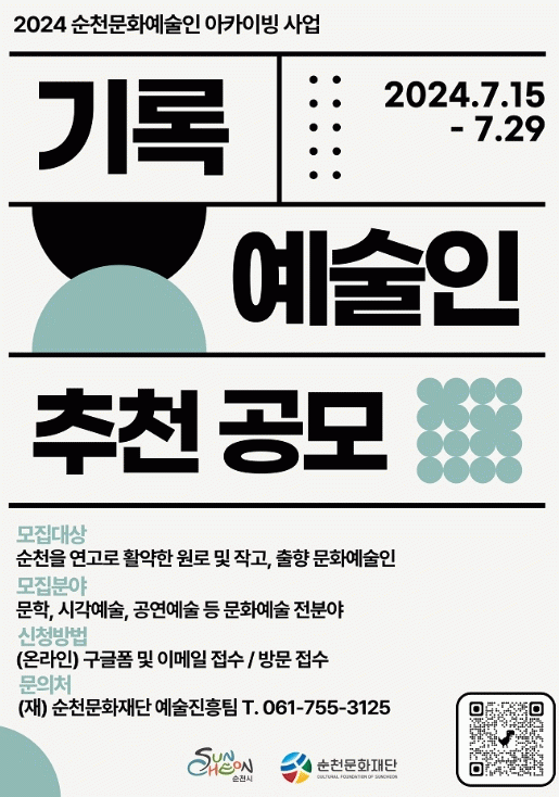 [¹Ìµð¾îÀü³² ÀÓ¼º¿Ï ±âÀÚ]¼øÃµ¹®ÈÀç´ÜÀº ¡®2024 ¼øÃµ¹®È¿¹¼úÀÎ ¾ÆÄ«À̺ù »ç¾÷¡¯ ±â·Ï ´ë»ó ¿¹¼úÀÎ ¼±Á¤À» À§ÇÑ ±â·Ï¿¹¼úÀÎ Ãßõ °ø¸ð¸¦ ¿À´Â 29ÀϱîÁö ÁøÇàÇÑ´Ù. ¡®2024 ¼øÃµ¹®È¿¹¼úÀÎ ¾ÆÄ«À̺ù »ç¾÷¡¯Àº ¼øÃµ Ãâ½Å ¿¹¼úÀÎÀÇ »ý¾Ö ¹×¡¦