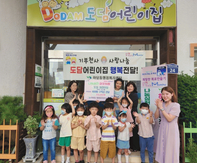 [¹Ìµð¾îÀü³² °í±Ô¼® ±âÀÚ]Çϴ絿¿¡ À§Ä¡ÇÑ µµ´ã¾î¸°ÀÌÁýÀÌ Áö³ 12ÀÏ ¾î·Á¿î ÀÌ¿ôÀ» À§ÇØ »ç¿ëÇØ ´Þ¶ó¸ç 26¸¸¿ø »ó´çÀ» Çϴ絿 ÇàÁ¤º¹Áö¼¾ÅÍ¿¡ Àü´ÞÇß´Ù. À̹ø ±âºÎ±ÝÀº ¿ø¾ÆµéÀÌ ¹°°ÇÀ» »ç°íÆÈ¸ç °æÁ¦È°µ¿À» ¹è¿ì´Â¡®Äá±ïÁö ³ª´® ¹ÙÀÚȸ¡¦