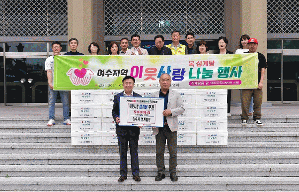 [¹Ìµð¾îÀü³² ÀüÇü¼º ±âÀÚ]¿©¼ö¾ç°èÇùȸ°¡ 11ÀÏ ¿ÀÀü ´Ù°¡¿À´Â Ãʺ¹À» ¸Â¾Æ 300¸¸ ¿ø »ó´çÀÇ »ï°èÅÁ¿ë »ý´ß 500¸¶¸®¸¦ ÈÄ¿øÇß´Ù. ½Ãû Çö°ü¿¡¼ ¿¸° Àü´Þ½Ä¿¡´Â Á¤±â¸í ¿©¼ö½ÃÀå, À̱⿬ ¿©¼ö¾ç°èÇùȸÀå, ¹Ú»ó¸¸ »ç¹«±¹Àå°ú »ç´Ü¹ýÀÎ ¿©¡¦
