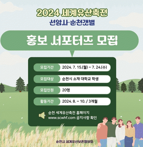 [¹Ìµð¾îÀü³² ÀÓ¼º¿Ï ±âÀÚ]¼øÃµ½Ã ¼¼°èÀ¯»êº¸Á¸ÇùÀÇȸ´Â 2024 ¼¼°èÀ¯»êÃàÀü-¼±¾Ï»ç¡¤¼øÃµ°¹¹ú °³ÃÖ¿¡ µû¸¥ »çÀü È«º¸ÀÇ ÀÏȯÀ¸·Î ¿À´Â 15ÀϺÎÅÍ 24ÀϱîÁö ¼Æ÷ÅÍÁ ¸ðÁýÇÑ´Ù. º»ÀÎÀÇ SNS¸¦ ¿î¿µ ÁßÀÌ°í ¼¼°èÀ¯»êÃàÀü¿¡ °ü½ÉÀÌ ÀÖ´Â ¼ø¡¦