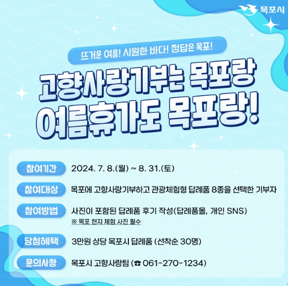 [¹Ìµð¾îÀü³² °í±Ô¼® ±âÀÚ]¸ñÆ÷½Ã°¡ ¿©¸§ ÈÞ°¡Ã¶À» ¸Â¾Æ¡®°íÇâ»ç¶û±âºÎ´Â ¸ñÆ÷¶û, ¿©¸§ÈÞ°¡µµ ¸ñÆ÷¶û¡¯À̶ó´Â ÁÖÁ¦·Î °íÇâ»ç¶û±âºÎÁ¦ ´ä·Êǰ Èı⠵î·Ï À̺¥Æ®¸¦ ÁøÇàÇÑ´Ù. À̹ø À̺¥Æ®´Â ³¶¸¸ °¡µæÇÑ Ç×±¸µµ½Ã ¸ñÆ÷ÀÇ ¸Å·ÂÀ» ´õ¿í ºû³¾¡¦