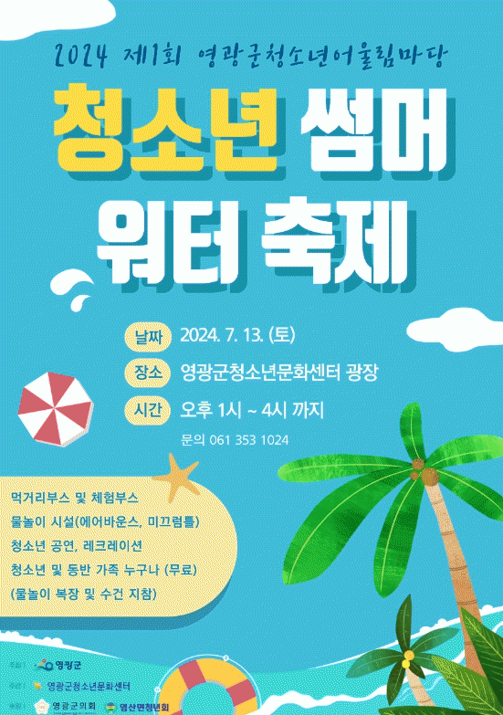 [¹Ìµð¾îÀü³² Á¦°¥´ëÁ¾ ±âÀÚ] ¿µ±¤±ºÀº ´Ù°¡¿À´Â ¿©¸§¹æÇÐÀ» ¸Â¾Æ Áö¿ª û¼Ò³âµéÀ» À§ÇØ ¡®Ã»¼Ò³â¾î¿ï¸²¸¶´ç-½æ¸Ó ¿öÅÍ ÃàÁ¦¡¯¸¦ ¿À´Â 7¿ù 13ÀÏ ¿µ±¤±ºÃ»¼Ò³â¹®È¼¾ÅÍ ±¤Àå¿¡¼ °³ÃÖÇÑ´Ù. À̹ø ÃàÁ¦´Â û¼Ò³âµéÀÌ ¹«´õ¿î ¿©¸§À» ½Ã¿øÇÏ¡¦