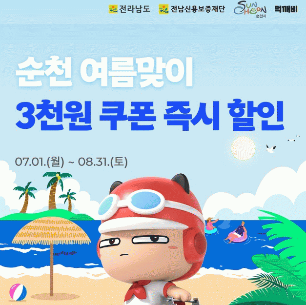 [¹Ìµð¾îÀü³² ÀÓ¼º¿Ï ±âÀÚ]¼øÃµ½Ã´Â ¿©¸§ÈÞ°¡Ã¶À» ¸Â¾Æ 1ÀϺÎÅÍ ¿¹»ê¼ÒÁø ½Ã±îÁö °ø°ø¹è´Þ¾Û ¡®¸Ô±úºñ¡¯¿¡¼ ¾à 4,000¸Å °¡·®ÀÇ 3õ¿ø Áï½Ã ÇÒÀÎ ÄíÆùÀ» Áö±ÞÇÏ´Â À̺¥Æ®¸¦ ÁøÇàÇÑ´Ù. ÇØ´ç À̺¥Æ®´Â 1ÀÎ 1ȸ Âü¿© °¡´ÉÇϸç, 1¸¸ 2õ¿øÀÌ»ó¡¦