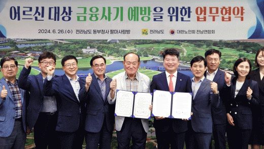 [¹Ìµð¾îÀü³² Á¦°¥´ëÁ¾ ±âÀÚ]Àü¶ó³²µµ´Â 26ÀÏ µ¿ºÎÁö¿ªº»ºÎ ÆÈ¸¶»ç¶û¹æ¿¡¼ ´ëÇѳëÀÎȸ Àü³²¿¬ÇÕȸ¿Í ¾î¸£½Å ±Ý¿ë»ç±â ¿¹¹æÀ» À§ÇÑ ¾÷¹«Çù¾àÀ» Çϰí, ÇÇÇØ¿¹¹æ ±³À° µîÀ» ÃßÁøÅ°·Î Çß´Ù. Çù¾à½Ä¿¡´Â ¹Úâȯ Àü³²µµ Á¤¹«ºÎÁö»ç, Á¤¾ç¼ö ´ë¡¦