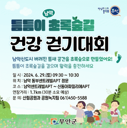 [¹Ìµð¾îÀü³² ±èÆÇ±¹ ±âÀÚ]Àü³² ¹«¾È±ºÀº 6¿ù 29ÀÏ ¿ÀÀü 9½Ã 30ºÐ ³²¾Ç µ¿ºÎ¼¾Æ®·¹ºô ¾ÆÆÄÆ® Á¤¹®¿¡¼ Ãâ¹ßÇÏ´Â ¡®³²¾Ç Æ´Æ´ÀÌ ÃʷϽ£±æ °Ç° °È±â´ëȸ¡¯¸¦ °³ÃÖÇÑ´Ù. À̹ø Çà»ç´Â ³²¾Ç ±âÈÄ ´ëÀÀ µµ½Ã½£ Á¶¼º»ç¾÷ ÁذøÀ» ±â³äÇÏ¿© °³ÃÖ¡¦