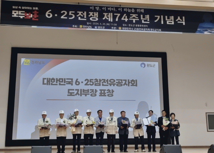 [¹Ìµð¾îÀü³² Á¦°¥´ëÁ¾ ±âÀÚ]Àü¶ó³²µµ´Â 25ÀÏ 6¡¤25ÀüÀï Á¦74ÁÖ³âÀ» ¸Â¾Æ ¿Ïµµ±º »ýȰ¹®È¼¾ÅÍ¿¡¼ ±â³äÇà»ç¸¦ ¿¾î, 6¡¤25ÀüÀïÀÇ ¿ª»çÀû ÀÇÀÇ¿Í ±³ÈÆÀ» µÇ»õ±â°í ÂüÀü¿ë»çÀÇ ¼þ°íÇÑ Çå½Å°ú Èñ»ýÁ¤½ÅÀ» ±â·È´Ù. ¡®ÀÌ ¶¥, ÀÌ ¹Ù´Ù, ÀÌ Çϴá¦