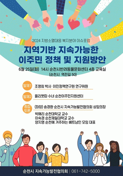 [¹Ìµð¾îÀü³² ÀÓ¼º¿Ï ±âÀÚ]¼øÃµ½Ã´Â ¼øÃµ½Ã Áö¼Ó°¡´É¹ßÀüÇùÀÇȸ ÁÖ°üÀ¸·Î ¿À´Â 25ÀÏ 14½Ã ¼øÃµ½Ã ¹Ý·Áµ¿¹°¹®È¼¾ÅÍ ±³À°½Ç¿¡¼ ¡®Áö¿ª±â¹Ý Áö¼Ó°¡´ÉÇÑ ÀÌÁֹΠÁ¤Ã¥ ¹× Áö¿ø¹æ¾È¡¯À̶ó´Â ÁÖÁ¦·Î 2024³â Áö¹æ¼Ò¸ê´ëÀÀ º¹ÁöºÐ¾ß À̽´ Æ÷·³À» ¡¦
